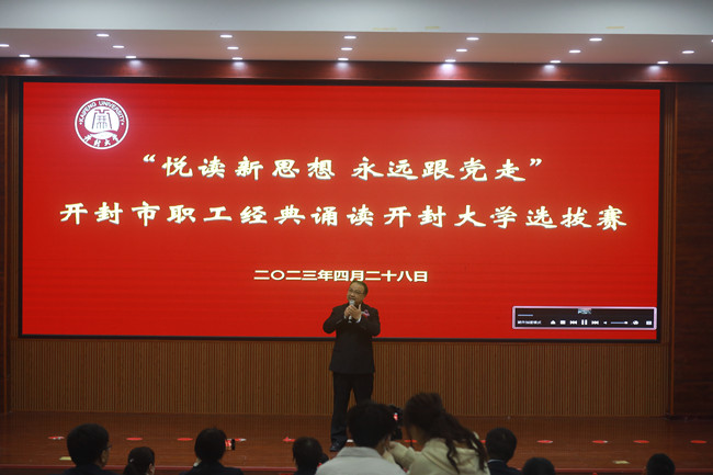 本站讯 为深入学习贯彻习近平新时代中国特色社会主义思想和党的二十大精神,认真落实中央、省委、市委关于推进全民阅读、建设书香开封的重要决策部署。4月28日上午,校工会在行政楼第一会议厅举办“悦读新思想 永远跟党走”开封市职工经典诵读活动bat365在线官方网站选拔赛。校党委委员、工会主席成芳出席活动。
