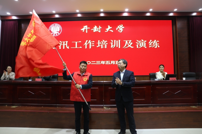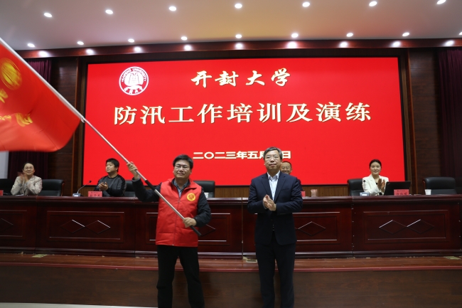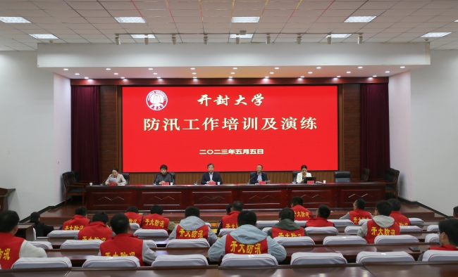 本站讯  为深入贯彻习近平总书记关于防汛救灾工作的重要指示,贯彻落实省、市防汛工作要求,提高我校防汛抢险实战水平和应急处置能力,5月6日下午,我校在行政楼一楼报告厅组织开展2023年度防汛培训和演练活动。校长宋晓炜、副校长李治、市应急管理局减灾科科长赵子龙、市应急管理局工程师任红丽、我校相关职能部门负责人及103名防汛抢险突击队队员参加了培训会和演练活动。本次活动由李治主持。