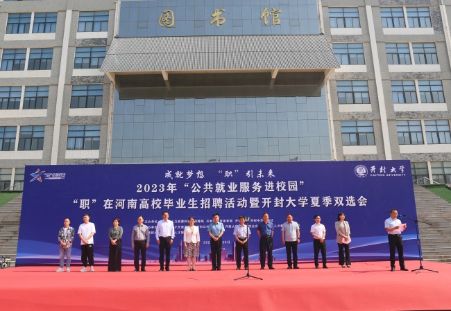 开封市副市长刘震,开封中华职教社主任、市政协原副主席王树强,开封市教育体育局党组副书记耿振勇,开封市人力资源和社会保障局副局长杨振法,河南人才集团党委委员、副总经理王利军,开封市人才交流中心主任郑允,开封市公共就业服务中心主任亢建超和部分企业代表,我校党委书记陈灿、副校长李治出席本次活动的启动仪式,bat365在线官方网站毕业生就业工作领导小组成员、各院部党总支书记、院长、副书记、毕业生辅导员及2023届毕业生参加启动仪式。启动仪式由李治主持。