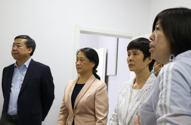 启动仪式后,邵华在校领导的陪同下前往我校网络文明素养教育实践基地开展考察调研,实地参观调研了14号楼“文化家”、人文学院“融媒体中心实训室”和“智慧互动录播室”。