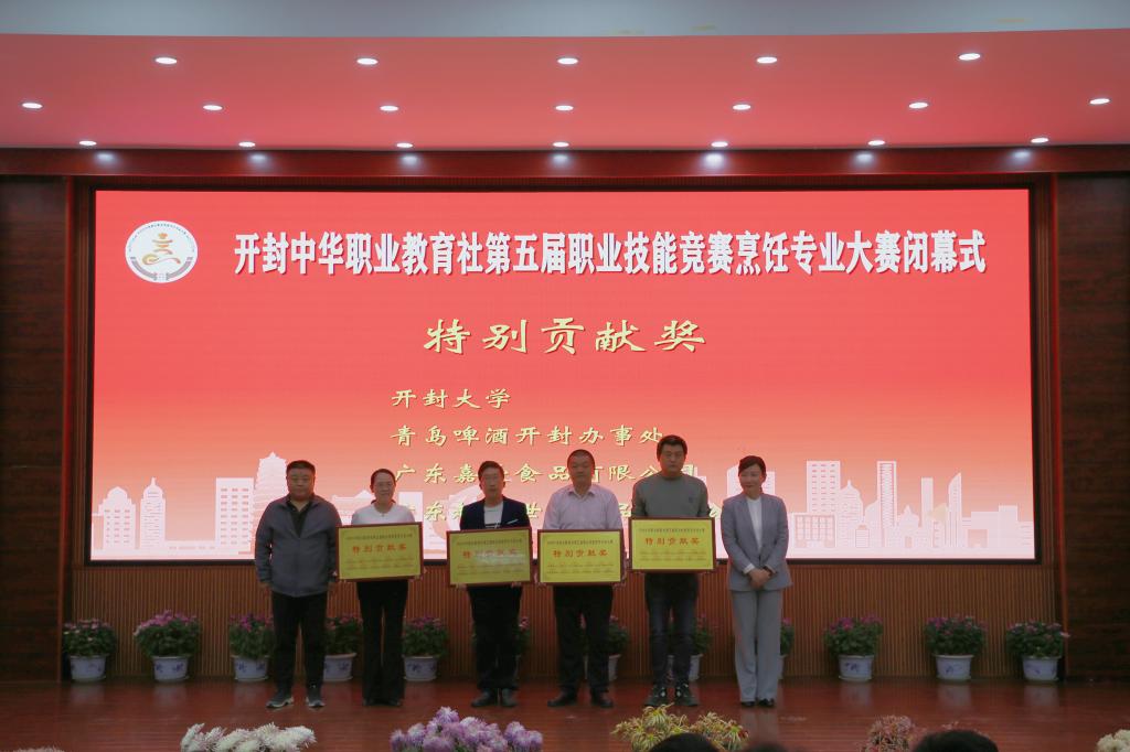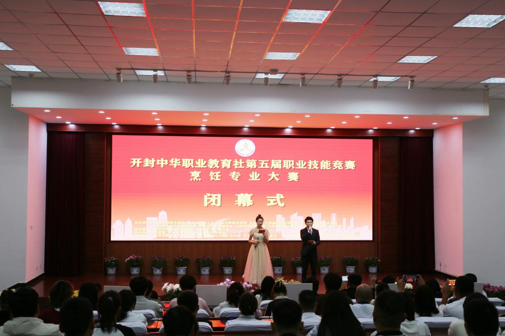 闭幕式上,与会领导分别为烹饪大赛获奖选手,特别贡献单位,优秀组织单位,第五届开封中华职教社职业技能烹饪专业大赛会标设计大赛突出贡献、优秀指导教师、获奖选手颁奖。大赛组委会副主任、开封市豫菜文化研究会会长王国君对本次大赛进行了点评。河南中华职业教育社秘书长牛爱平宣布大赛闭幕。