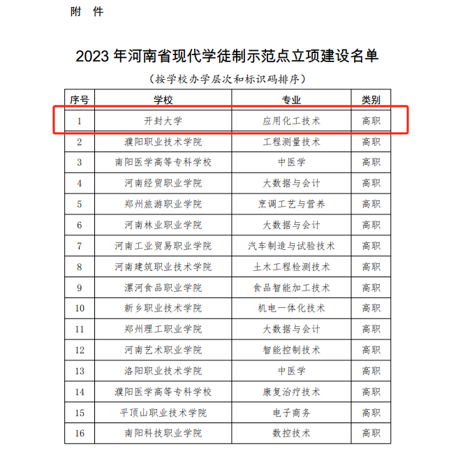 本站讯 近日,河南省教育厅发布了《关于公布2023年河南省现代学徒制示范点立项建设名单的通知》,材料与化学工程学院的应用化工技术专业被确立为河南省现代学徒制示范点。