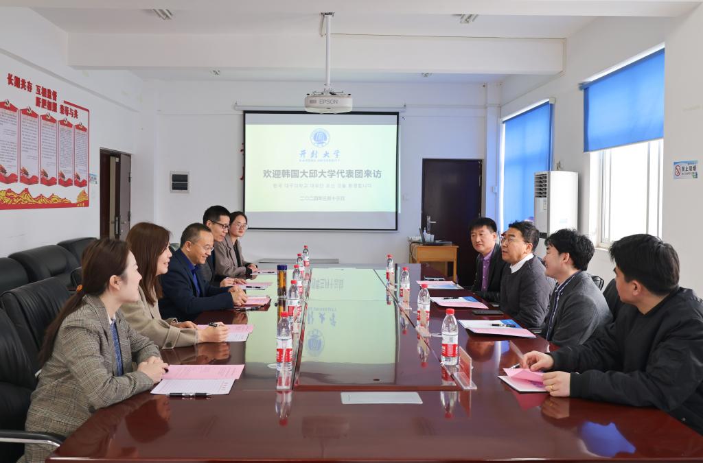大邱大学国际处处长李昇熙对我校的邀请表示感谢,并介绍了大邱大学的发展历史、专业设置、本硕项目等相关情况。双方就本科人才培养、师生互访、交换生项目等方面进行了深入的交流和探讨,并达成多项共识。接下来,双方将签订备忘录并落实合作意向,为师生提供更多学习交流的国际平台。