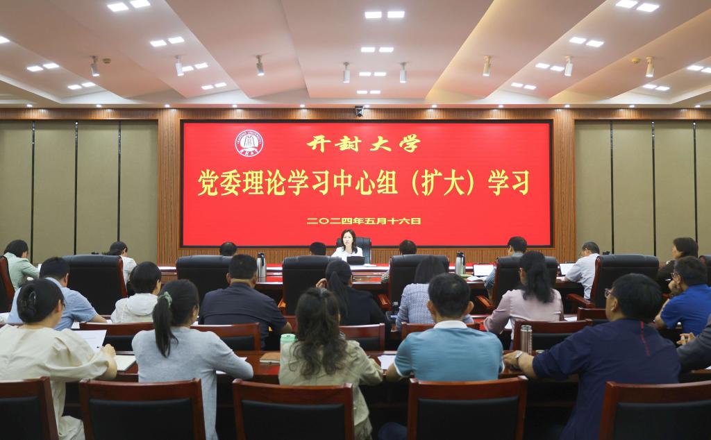 本站讯 5月16日下午,我校党委理论学习中心组(扩大)学习在行政楼第二会议厅举行,校党委理论学习中心组成员、各院部党总支书记、全体思政课教师参加学习。学习由校党委书记谭贞主持。