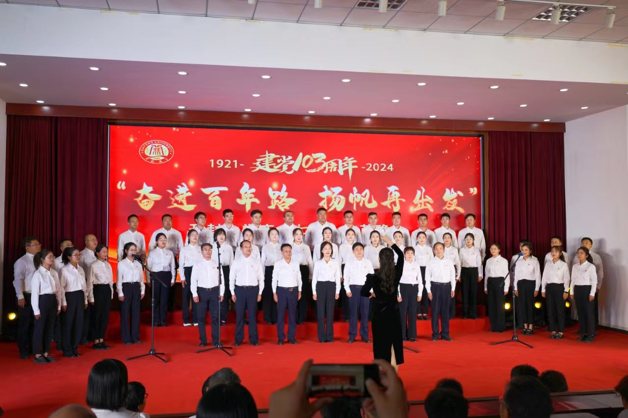 谭贞在致辞中带领大家回顾了党103年的奋斗历程,强调了党在革命、建设和改革中的伟大贡献,特别是在党建引领下,学校一年来取得的显著成绩。谭贞鼓励全校师生继续发扬党的优良传统,为实现中华民族伟大复兴的中国梦贡献自己的智慧和力量。
