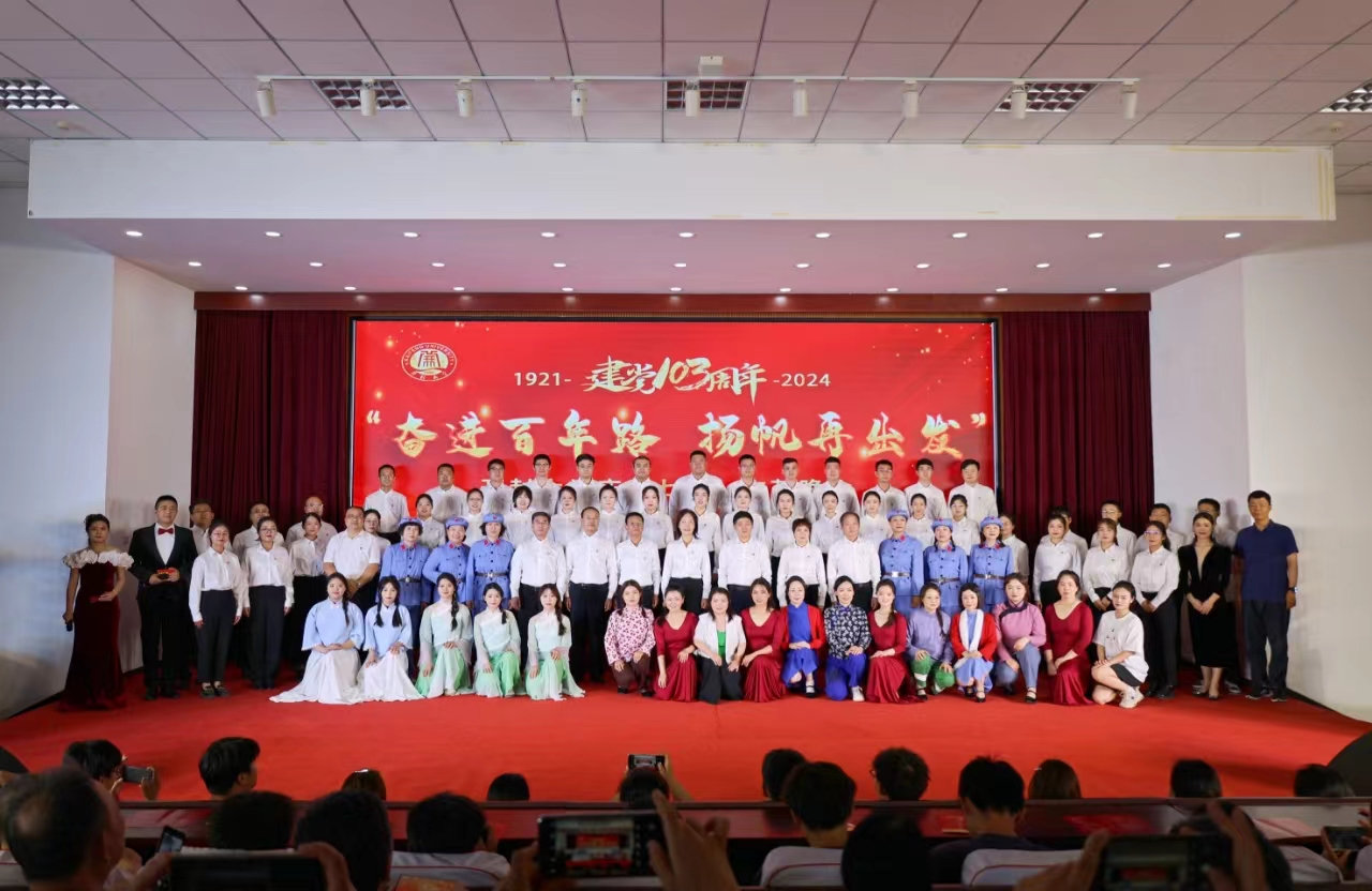 本站讯 为庆祝中国共产党成立103周年,我校于6月27日晚在行政楼第一会议厅隆重举办“奋进百年路 扬帆再出发”庆祝建党103周年师生文艺晚会。校党委书记谭贞、校长王德如出席文艺晚会,校领导班子成员、全体中层正职干部、师生代表参加文艺晚会。