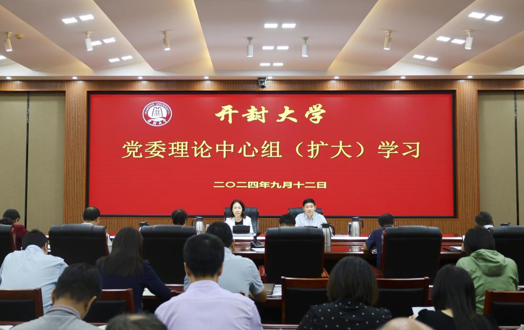 本站讯 9月12日上午,我校党委理论学习中心组(扩大)学习在行政楼第二会议厅举行,校党委理论学习中心组成员、全体中层正职干部参加学习。学习由校党委书记谭贞主持。