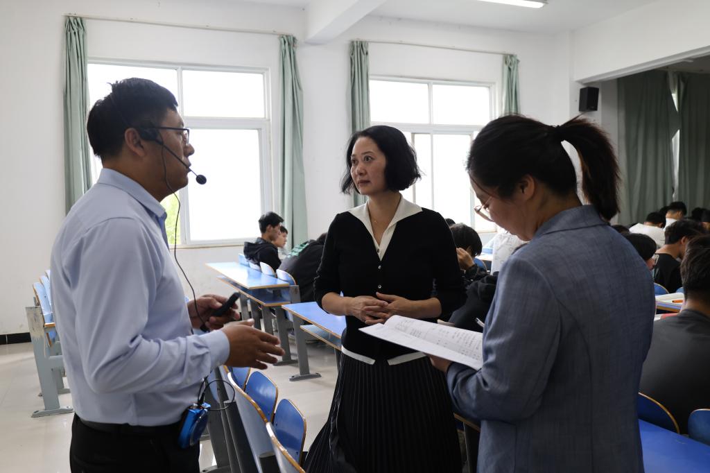 调研组采取随机抽取、推门听课的方式,先后听取了马克思主义学院党总支书记李鹏和陈友东老师讲授的“毛泽东思想和中国特色社会主义理论体系概论”,宋洪杰老师讲授的“思想道德与法治”课程。