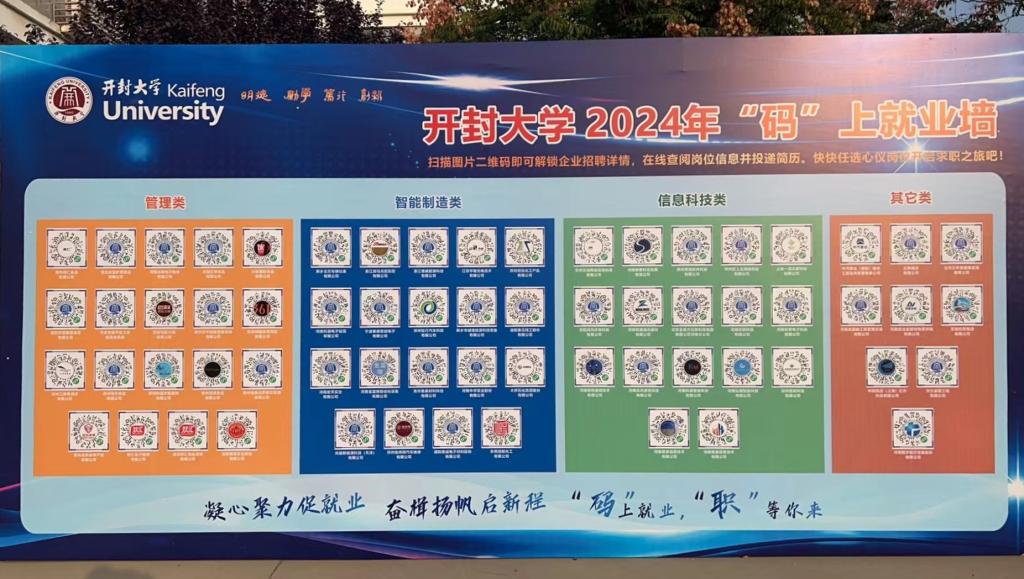 “码”上就业墙持续展示12天,为同学们提供充足的时间了解企业信息并投递简历,旨在为广大毕业生提供更加便捷、高效的就业渠道。首批展示的64家招聘企业的二维码涵盖了多个行业领域,满足不同专业学生的求职需求。