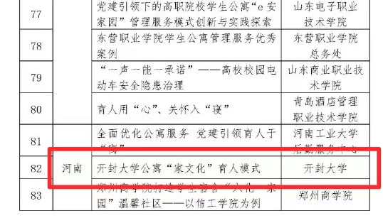 在本次评选活动中,河南省共有3所高校获此殊荣,相关案例将被编入《全国高校学生公寓管理服务典型案例汇编》中,并通过中国教育后勤协会官网、公众号以及“高校学生公寓管理”公众号等官方平台进行宣传和推广。