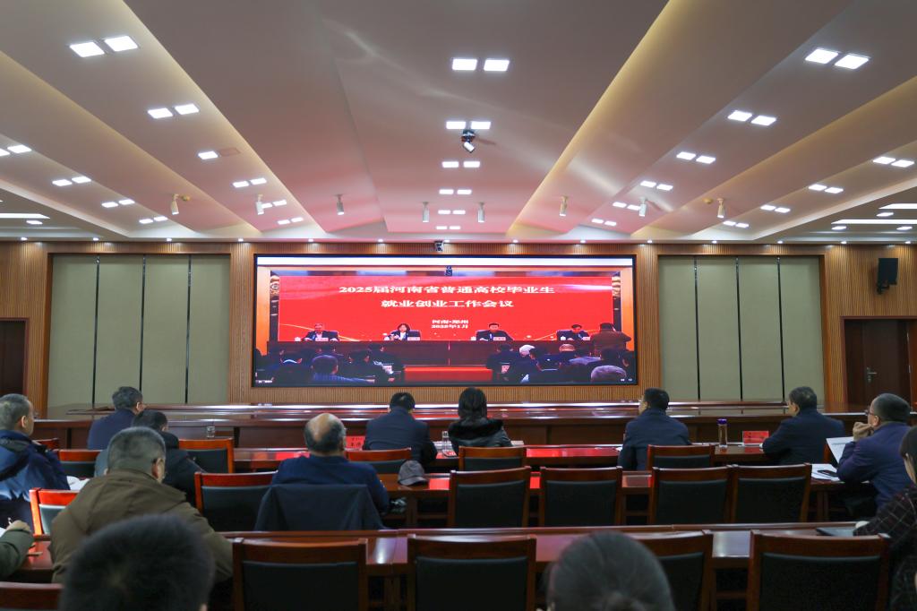 为深入学习贯彻习近平总书记关于高校毕业生就业工作的重要指示批示精神,全面落实党的二十届三中全会精神和全国全省教育大会精神。1月6日上午,省教育厅、省人社厅、省工信厅组织召开2025届河南省普通高校毕业生就业创业工作视频会议,我校在行政楼第二会议厅设分会场。校党委书记谭贞、校长王德如出席会议。