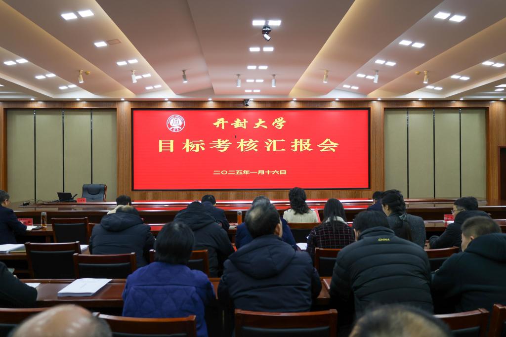 本站讯 1月16日,我校在行政楼第二会议厅召开2024年度目标责任考核汇报会。校党委书记谭贞、校长王德如出席会议,会议由副校长万是明主持。