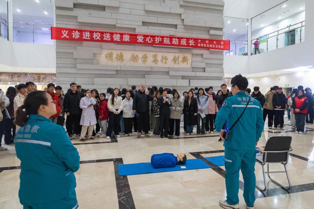 活动现场,中医专家为师生们提供了专业的把脉问诊、精准的体质辨识以及贴心的调理保健服务,现场演示心肺复苏术、海姆立克急救法等实用技能,通过互动教学帮助师生掌握急救要领,进一步强化了他们的应急能力。在免费体检区域,专家团队认真细致地为现场师生进行身高测量、视力检测、口腔检查、心肺功能评估等基础体检及化验服务,现场解读检测结果,并根据不同情况提供个性化的健康建议,积极倡导健康的生活方式。