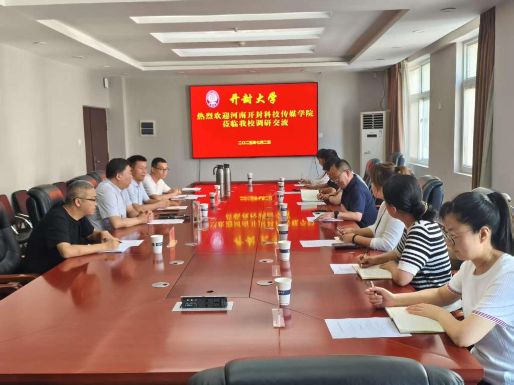 本站讯 7月2日下午,河南开封科技传媒学院副校长贡振国一行6人到访我校,就高校餐厅集采招采与经营管理工作进行调研交流。副校长院继恒参加座谈并讲话。