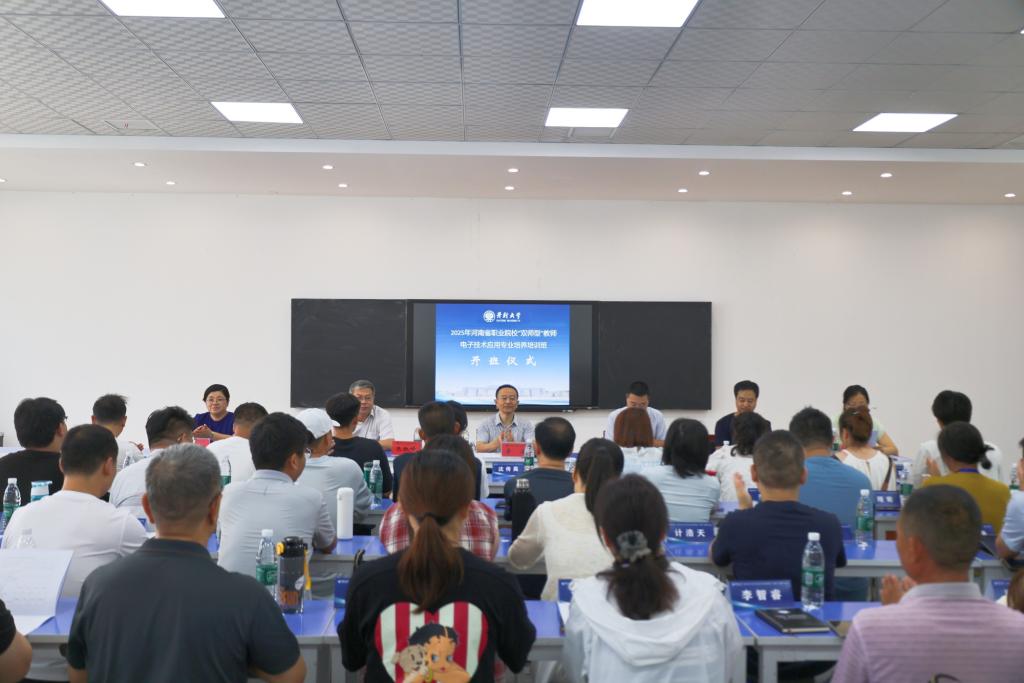 本站讯 7月7日,由河南省教育厅主办、bat365在线官方网站承办的2025 年河南省职业院校“双师型”教师培养培训项目电子技术应用专业(中职)开班仪式在6号楼321教室举行。副校长李治参加仪式并致辞。