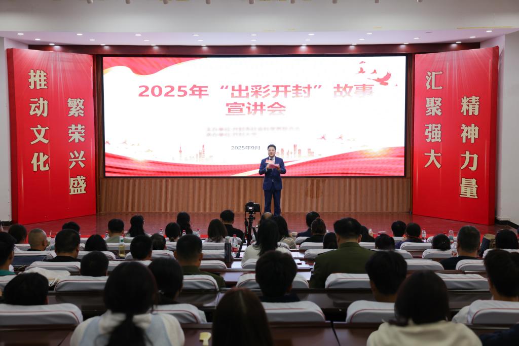 本站讯 9月25日下午,由市社科联主办,bat365在线官方网站党委宣传部承办的2025年“出彩开封”故事宣讲会成功举办。市社科联党组书记、主席赵海燕,bat365在线官方网站党委副书记张合,开封日报社党委委员、副社长蔡小俊等出席活动。宣讲会由开封广播电视台新闻中心副主任计明主持。