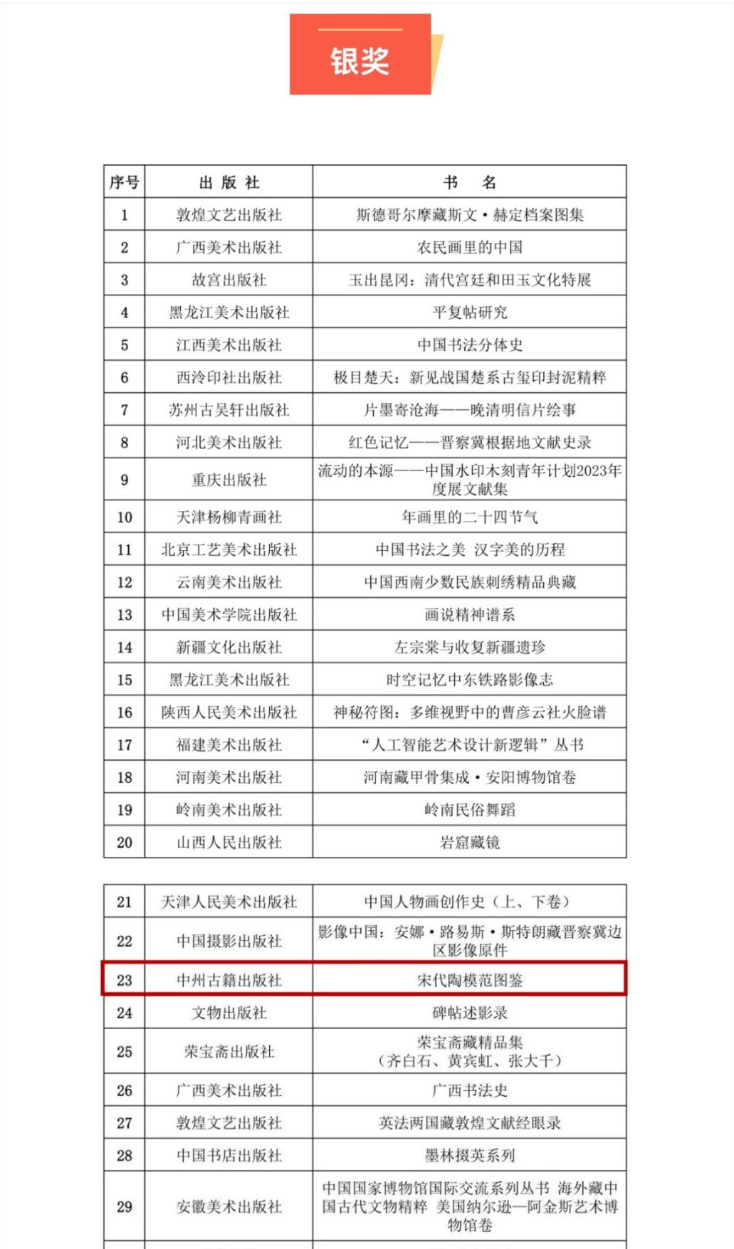 本站讯 近日,第 35 届“金牛杯”全国优秀美术图书终审评选圆满落幕。由我校魏威、魏跃进两位老师合著的作品《宋代陶模范图鉴》荣获优秀美术图书奖银奖。