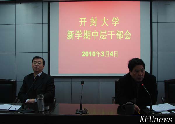本站讯 2010年3月4日上午,我校在行政楼二楼会议厅召开了新学期全体中层干部会议,会议由校党委书记莫华林主持,校长拜五四回顾了寒假期间学校各项工作的开展情况,重点安排布置了新学年工作。会议要求大家要深入贯彻落实科学发展观,全面贯彻党的教育方针,以解放思想、改革创新为动力,以提高办学质量和人才培养水平为目标,以省级示范性高等职业院校建设和北校区建设为重点,进一步夯实基础,凝炼特色,强化服务,提升内涵,全面推进学校在新的起点上实现科学发展。全体在校校领导、全体中层干部参加了会议。