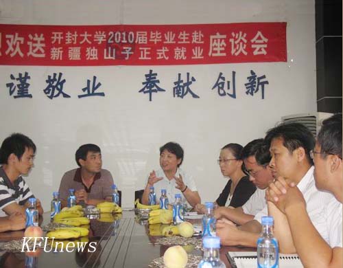 本站讯 7月16日下午,化工学院在就业中心会议室举行欢送2010届毕业生赴新疆独山子公司就业座谈会,参加座谈会的有校党委组织部部长秦雪峰,化工学院党政领导、专业骨干教师、辅导员及5位将赴新疆就业的学生代表。