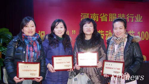 我校工艺美术服装教研室被河南省服装行业协会、河南国际商会服装商会授予河南省服装行业“三八红旗班组集体”荣誉称号,工艺美术学院服装设计专业是我校的校级示范性专业,该专业教研团队非常优秀,为我校的人才培养、省级示范性高职院校建设、精品课程建设做出了积极的奉献。同时,我校工艺美术学院张富云、伊红莉、苗靖和袁颖4位同志被授予河南省服装行业“三八红旗手”荣誉称号。