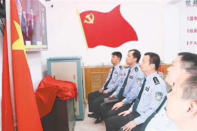 又讯 全媒体记者沈泓琳报道 10月1日一大早,城乡一体化示范区公安分局西湖派出所党员民警、辅警来到会议室,收看庆祝中华人民共和国成立70周年大会直播盛况。