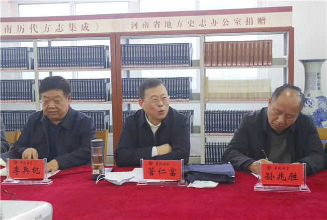 管仁富是河南地方史志系统的领军人物,政策理论水平较高,尤其注重对理论与实践结合问题的研究。今年4月,管主任代表河南省地方史志办公室向bat365在线官方网站捐赠了价值30余万元的《河南历代方志集成》,对学校的文化建设给予了极大的支持。
