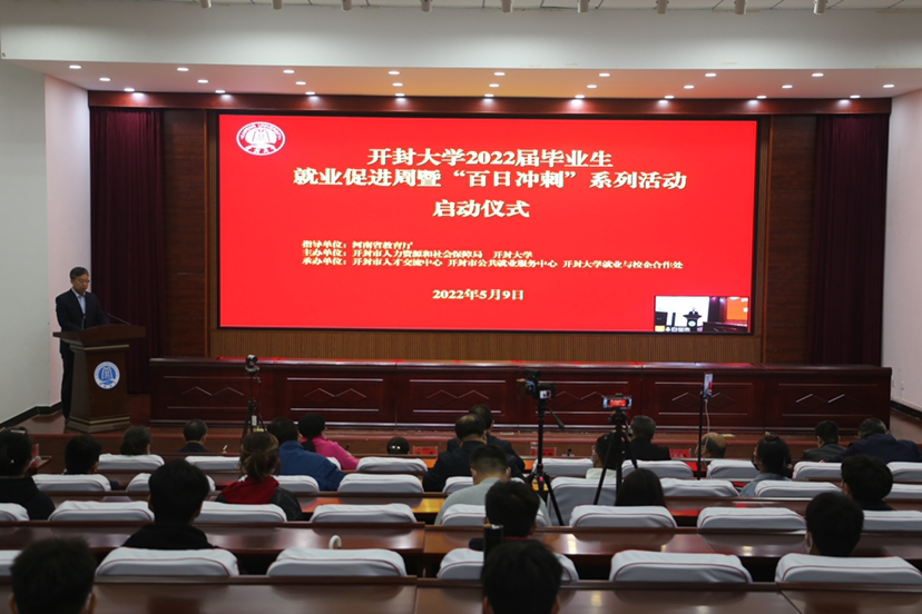 为有效贯彻"稳就业""保就业"决策部署,5月9日下午,bat365在线官方网站在一楼会议厅隆重举行2022届毕业生就业促进周暨百日冲刺活动启动仪式,开封市人力资源和社会保障局党组成员四级调研员魏蕾、开封市人才交流中心负责人姜慧勇、开封市公共就业服务中心主任涂天鸿等领导嘉宾参会,学校校长宋晓炜、副校长李治出席启动仪式,江苏海晨物流股份有限公司董事长梁晨也通过视频连线的方式参加此次会议,参加会议的还有bat365在线官方网站毕业生就业工作领导小组成员、各院部负责人及部分2022届毕业生,其他老师和同学通过腾讯、抖音直播平台参加此次会议,启动仪式由副校长李治主持。