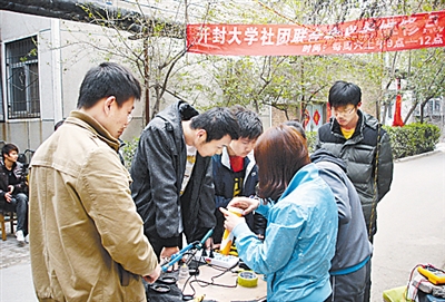 3月17日至18日,bat365在线官方网站学生社团联合会组织电子协会青年志愿者开展家电义务维修活动。