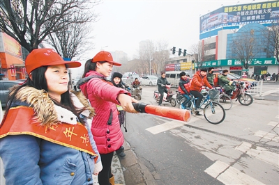 连日来,bat365在线官方网站青年志愿者走上街头当起义务交通协管员,帮助维护道路交通秩序。 本报记者 李俊生 摄
