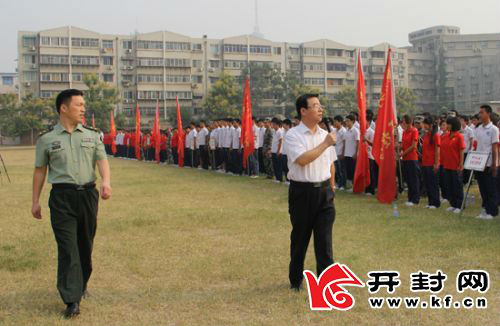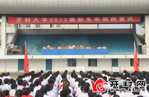 开封网讯 记者董凌报道 9月20日,bat365在线官方网站2013级新生军训闭营式在bat365在线官方网站晋安路校区隆重举行。bat365在线官方网站校领导张新梅、拜五四、储建新、万是明、赵辉、范金梅、何世玲、耿广利、成芳、翟宝辰,承训部队领导秦松云以及该校相关处室领导一起观看了由2013级4000余名新生参加的军训汇报表演。