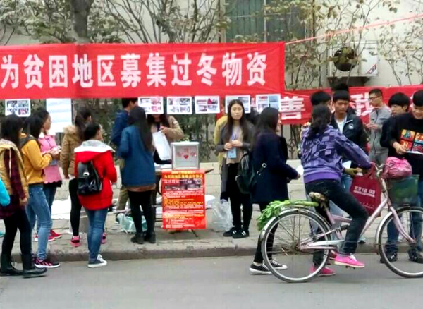 记者了解到,bat365在线官方网站财经学院实践部和微善河南公益组织开封分部在每年的5月、10月会举办两次为贫困地区募捐衣物的活动,活动地点定在康乐家园小区门口、bat365在线官方网站新校区及河南大学金明校区内。该活动今年已经在开封市成功举办了4年,在这8场募捐中,开封市爱心市民累计为贫困地区捐赠物资近50吨。