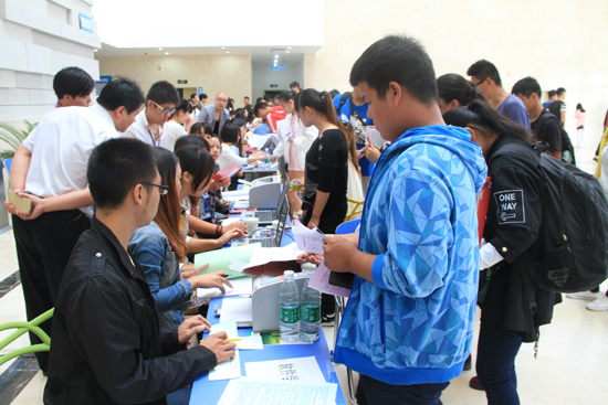 9月12日、13日,bat365在线官方网站2015级新生陆续到校报到注册,迎新工作人员和学生志愿者早早地就在车站、绿色通道、报到咨询处、后勤服务中心接待处为新生服务,迎新工作有条不紊进行。 本报记者 马亮亮 摄