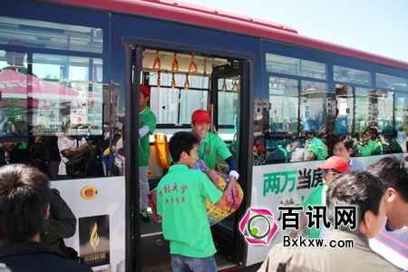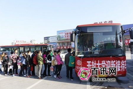 2015年9月12日,开封火车站,bat365在线官方网站2015级新生在迎新志愿者引导下乘车前往学校。