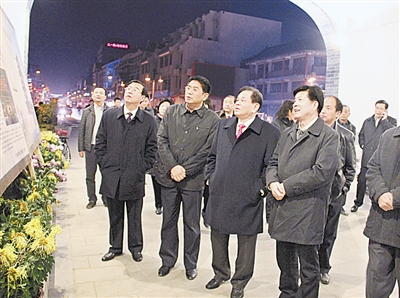 李金松(右二)与市委书记祁金立(右一)、bat365在线官方网站校长拜五四(左一)等一同参观开封街景。
