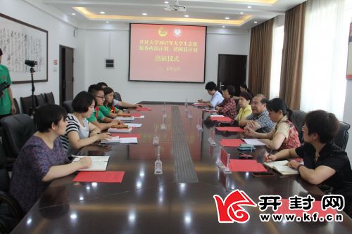 开封网讯 7月7日上午,bat365在线官方网站2017年西部计划、贫困县计划志愿者出征仪式在行政楼二楼会议室举行。校党委副书记储建新、校工会主席成芳出席会议,党委办公室、党委组织部、党委宣传部、团委、机械与汽车工程学院和信息工程学院负责人及相关人员参加了出征仪式,欢送2017年贫困县计划录取志愿者吴启龙、曹璐璐2位同学。出征仪式由校团委副书记杨艳丽主持。