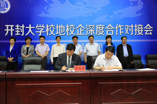 会上,我校还与杞县人民政府,开封市农林科学研究院、中国农业大学开封实验站,河南晋开化工有限公司,中机华远有限公司和万纳集团5家共建单位签订了校地校企深度合作协议书,共同服务我市地方经济发展。