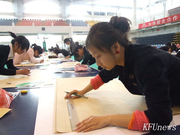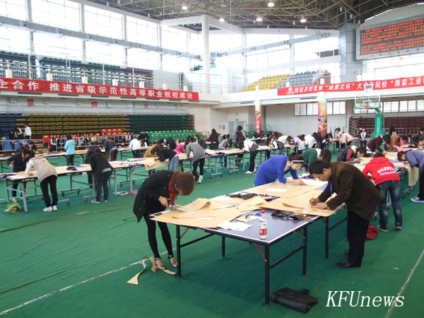 市政协副主席陈传智宣布:开封市首届“迪蒙尼”杯大中专院校服装工业制版操作技能大赛现在开始!各代表队有秩序地进入赛场,由工艺美术学院副院长张富云主持,省服装行业商会秘书长李文杰抽签选题比赛正式进行。从大赛承办单位我校工艺美术学院院长魏跃进处获悉,本次大赛将决出河南省服装工业制版操作技能标兵、技术能手8名。