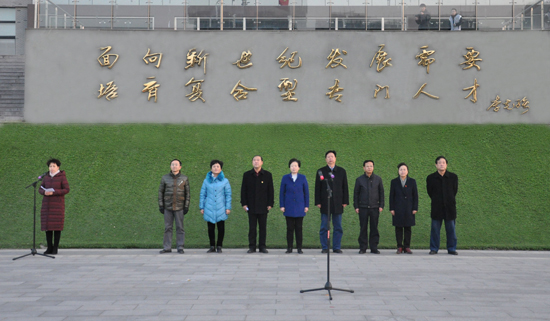 本站讯 2月20日清晨,我校在东京大道校区大观广场隆重举行新学期升国旗仪式,校领导张新梅、宋志敏、储建新、万是明、范金梅、何世玲、李新春、成芳和李治出席升旗仪式,全校万余名师生参加升旗仪式。仪式由校工会主席成芳主持。