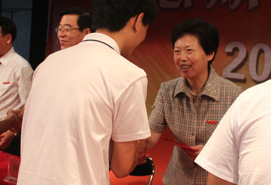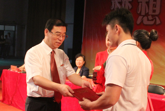校长拜五四为2013届毕业生代表颁发毕业证书,并合影留念。