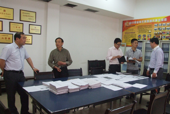 督导组成员听取汇报后,与我校参会人员进行了座谈,并仔细查阅了贯彻落实《条例》的有关佐证材料。随后,督导组成员在储书记的陪同下到软件技术学院进行了实地查看。