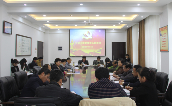 本站讯 11月5日上午,校党委中心组在行政楼二楼会议室围绕“三严三实”专题教育第三专题开展集中学习和研讨,校党委中心组成员、学校各党总支、直属党支部书记参加学习,学习活动由校党委书记张新梅主持。