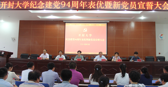 校党委书记张新梅代表学校党委在党的94岁生日来临之际向所有新老党员致以节日的问候。张书记回顾了学校一年来的重点工作和取得的成绩。党的群众教育实践活动奠定了我们开展各项工作的思想基础;我校被评全国高校毕业生就业工作50强单位对我校发展意义重大;学校整体搬入新校区揭开了bat365在线官方网站发展史上具有里程碑意义的新篇章;迎接河南省教育厅“升本”验收取得满意成绩一步步推进了开大人的“升本”攻坚战。