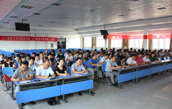 拜校长对新的学年如何落实全国职业教育工作会精神以及做好十项工作任务做了具体的阐述和安排。全国职业教育工作会是一次领导重视前所未有、改革力度前所未有的会议,是新时期中央关于职业教育的功能新定位、形势新判断和工作新部署。我校在落实会议精神的同时,进一步推进“五个对接”,专业设置与产业需求、课程内容与职业标准、教学过程与生产过程、毕业证书与职业资格证书、职业教育与终身学习对接,更好地适应技术进步和生产方式变革以及社会公共服务的需要。拜校长对新学年十项重点工作做了详细安排。第一、科学谋划升本工作;第二、加快推进新校区建设;第三、全面提升教育教学水平;第四、积极提高科研工作层次;第五、扎实做好就业工作;第六、进一步加强干部队伍建设;第七、深入推进管理体制机制改革;第八、加强党建和党风廉政建设;第九、加强和改进思想政治教育工作,全面推进素质教育;第十、加强校园文化建设,创建和谐平安校园。