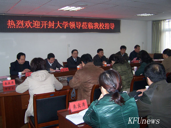 次日,考察团一行到南阳师范学院学习调研。在座谈会上,党委书记苗相甫介绍了学校的“多元办学、重点突破”、“特色名校”和“‘沃土’竞争”的三大发展战略,坚持“创新发展、科学发展、持续发展、和谐发展”,以及“争取两大突破”等一系列办学理念。之后,副书记黄荣杰简要回顾了学校迎接党建工作评估的各项筹备工作,并为我校的迎评工作提供了大量宝贵的意见和建议,大家又一起观看了南阳师院党建工作宣传片《沃土》。随后,考察团一行分别到各对口单位进行了调研和交流。