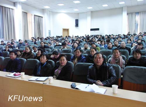 本站讯 11月15日下午,我校在报告厅组织了11月份集体党课。校领导储建新、万是明、赵辉、范金梅与400余名师生党员一起聆听了郑州师范学院历史系主任、教授王永恒博士的题为《多维视角下的<中国共产党章程>》的党课。