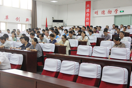 本站讯 9月7日下午,我校新学期工作会在行政楼一楼会议厅召开。校领导张新梅、宋志敏、储建新、万是明、赵辉、范金梅、何世玲、成芳、曾小平和李治出席会议,我校副科级以上干部、正教授参加了会议。会议由校党委书记张新梅主持。