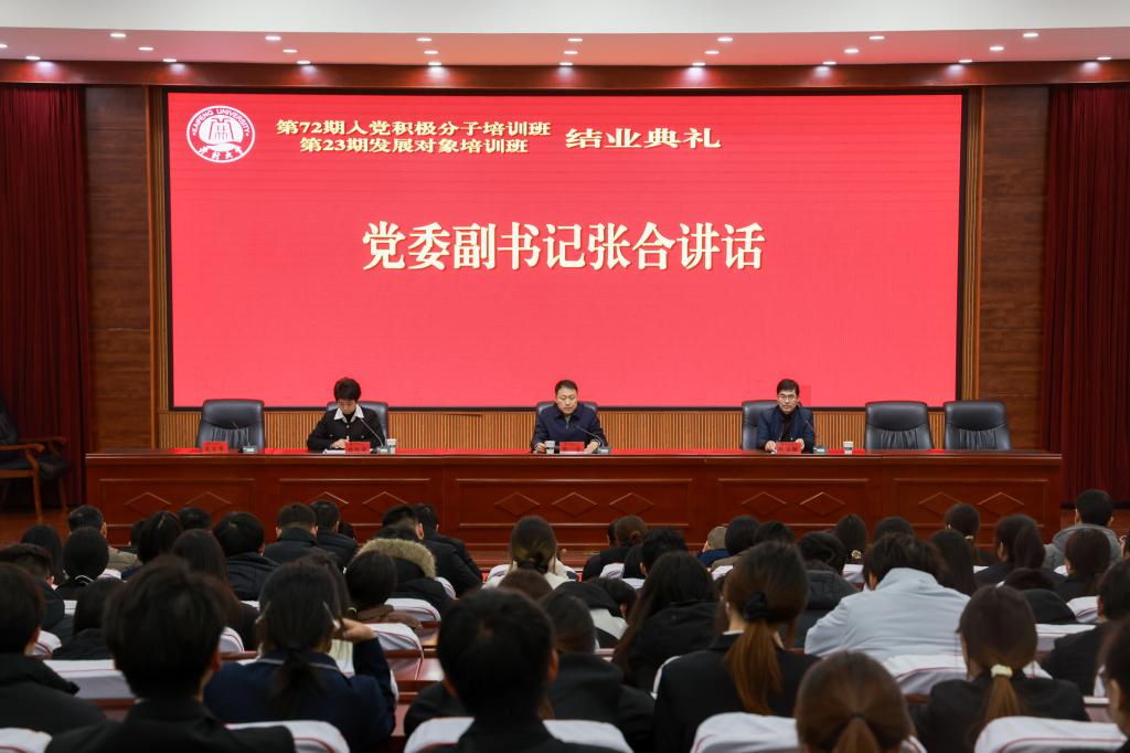 本站讯 12月11日下午,bat365在线官方网站党校第72期入党积极分子培训班暨第23期发展对象培训班典礼在行政楼第一会议厅举行。校党委副书记张合参加会议并作党的二十届四中全会精神专题宣讲。会议由党委组织统战部副部长杨艳丽主持。