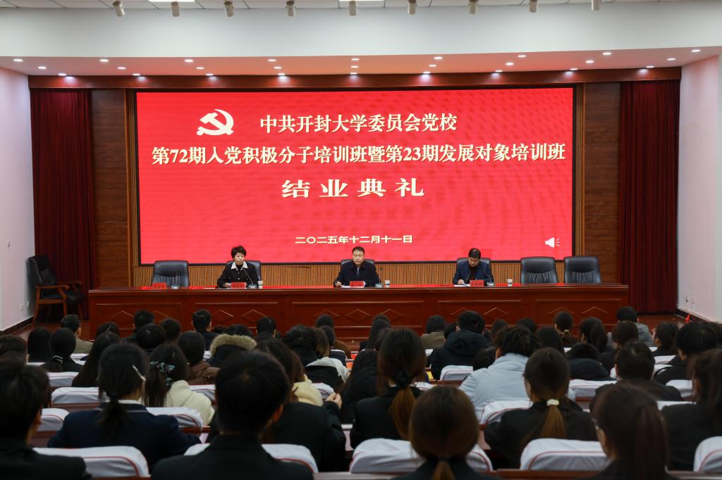 党委组织统战部部长赵海胜宣读表彰决定。与会领导为顺利结业的314名入党积极分子、128名发展对象颁发结业证书,并对32名优秀学员、8名优秀指导教师进行表彰。土木建筑工程学院教师刘嘉乐、国际教育学院学生徐万宝作为优秀学员代表,分享了培训期间的学习收获与成长感悟;平泽禹、郭小玉作为优秀指导教师代表分别作典型发言。全体学员投递《初心使命:给十年后的自己的一封信》,校党校将对学员未来发展进行跟踪培养。