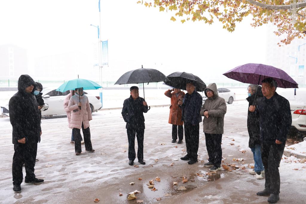 检查团先后来到各楼宇出入口、楼梯通道等场所,排查积雪清理与防滑措施落实情况,要求相关责任单位密切关注天气变化,及时做好隐患整治,保障校园道路畅通。在学生宿舍楼,校领导与同学们亲切交流,详细询问取暖保障及周末生活安排,提醒大家增强防寒保暖意识,注意出行安全;校领导叮嘱后勤服务一线工作人员,务必做好自身安全防护,并完善极端天气除雪应急预案,确保应急处置及时高效。