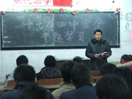 会上,徐老师首先宣读了我校关于认真学习贯彻党的十七届四中全会精神的通知,强调了学习四中全会精神的重要意义,并对学习主要内容做了安排。此次学习采取分组讨论和代表发言的形式,结合当前我校甲流防控工作、期末复习考试、班级管理等方面进行了讨论学习。